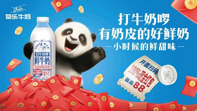 打牛奶啰选用了菊乐最优质的的奶源,牧场位于甘肃张掖,位于北纬39°黄金奶源带上,有用天然无污染的土地以及祁连冰山水源自然环境+进口牛种+科学饲喂,产出了高质量的奶源,天然乳蛋白含量达到3.7g/100ml,是目前市场上在售鲜牛奶中乳蛋白含量较高的鲜奶。目前打牛奶啰已经在盒马、伊藤、沃尔玛、永辉、红旗连锁、全家、711等成都各大超市、便利店全面上架,活动期间购买产品还可参与开盖扫码赢红包活动,且100%都是真实的现金红包。