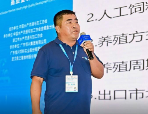 湛江经纬实业有限公司董事长张春文致辞,他表示,金鲳鱼正在站在新的历史起点上,金鲳鱼产业前景光明,我们产业携手共进,勇攀高峰,共同书写金鲳鱼产业高质量发展的新篇章!