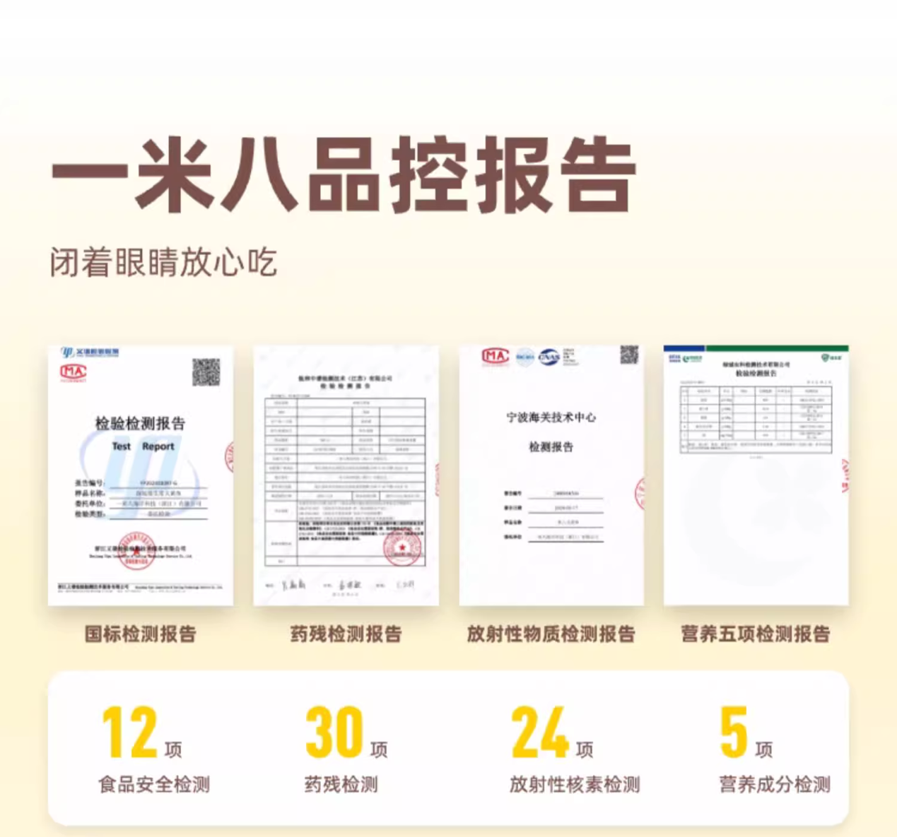 除了高品质的海鲜产品,一米八还不断引入科技力量,提升产品的营养价值和安全性。通过科学的养殖技术和加工工艺,为每一份海鲜保留了最天然的营养成分和风味。同时,还建立了完善的质量控制体系,每三个月出具一次完善的品控报告,对产品的质量、营养、和海域放射性进行严格监控,确保消费者能够放心享用。
