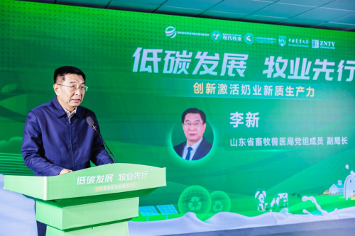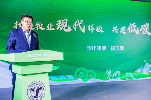 山东省畜牧兽医局党组成员、副局长李新发表欢迎词时表示,现代牧业作为行业领军企业带头实施饲用豆粕减量替代行动,2024年以来通过开发使用新原料降碳1.73万吨,持续发挥行业引领示范作用。此次活动授予商河牧场等三个牧场为“低碳示范牧场”,并为十四五项目示范基地、农大研究生实践基地落户商河牧场揭牌,充分说明现代牧业在节粮减排、绿色低碳方面取得了优秀成绩,对于促进奶业绿色低碳发展具有里程碑意义。
