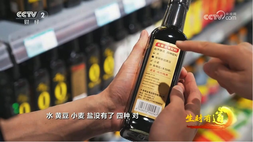 报道中,千禾调味品实验室负责人以专业感官测评,对比千禾0酱油与普通酱油的风味差异:“千禾0”系列酱油只用水、黄豆、小麦、食用盐等简单配料酿造,口感醇厚回甘,酱香浓郁。